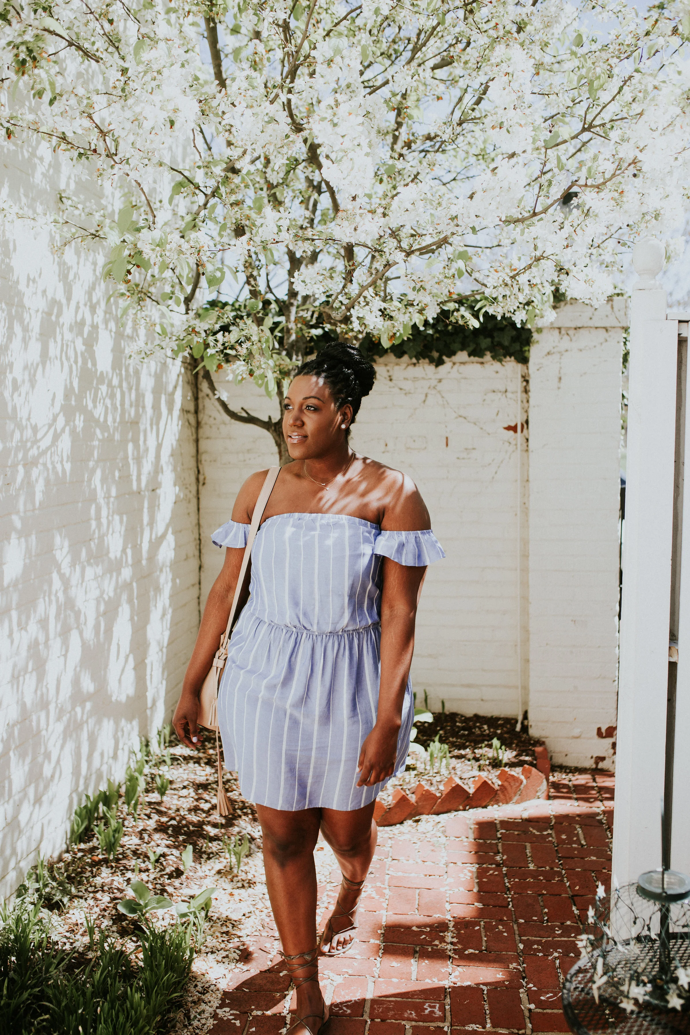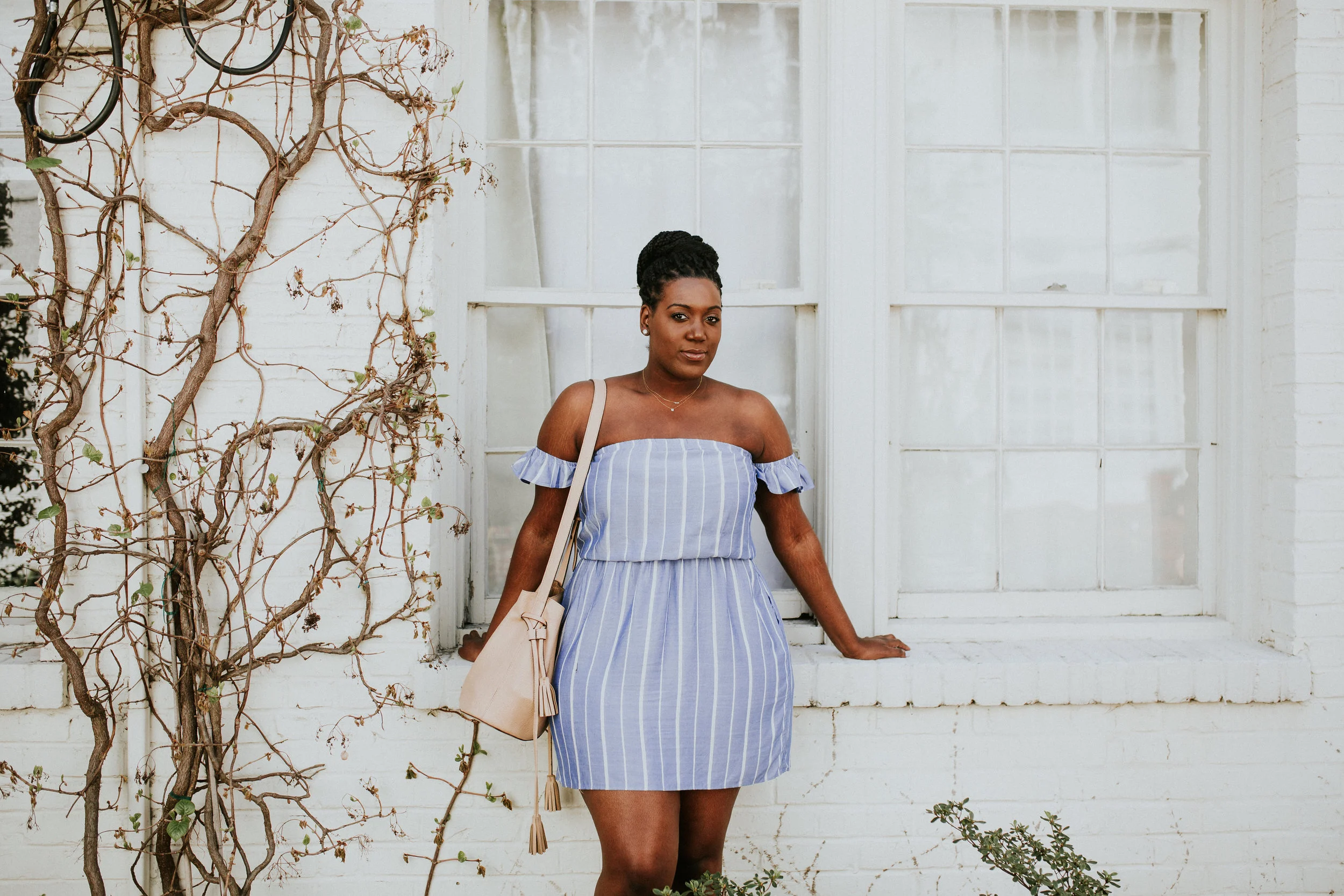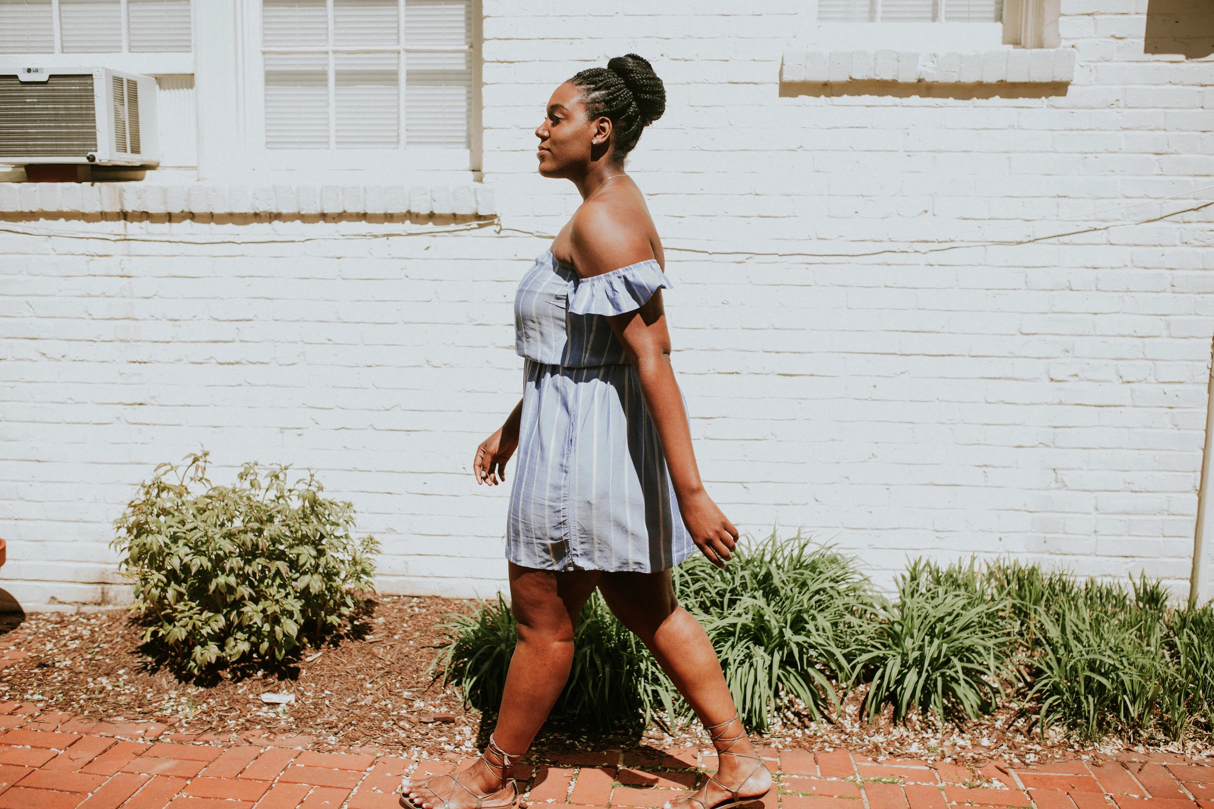 I love how much this dress accentuates my shoulders, so I decided to throw my hair up for this look. If my Instagram is any indication, I think it's safe to say that braid buns have become my latest obsession. Aside from the fact that it's a fool-proof way to stay cool, the braid bun is the most effortlessly sophisticated box braid hairstyle I've worn. I'm always looking for a reason to wear one.