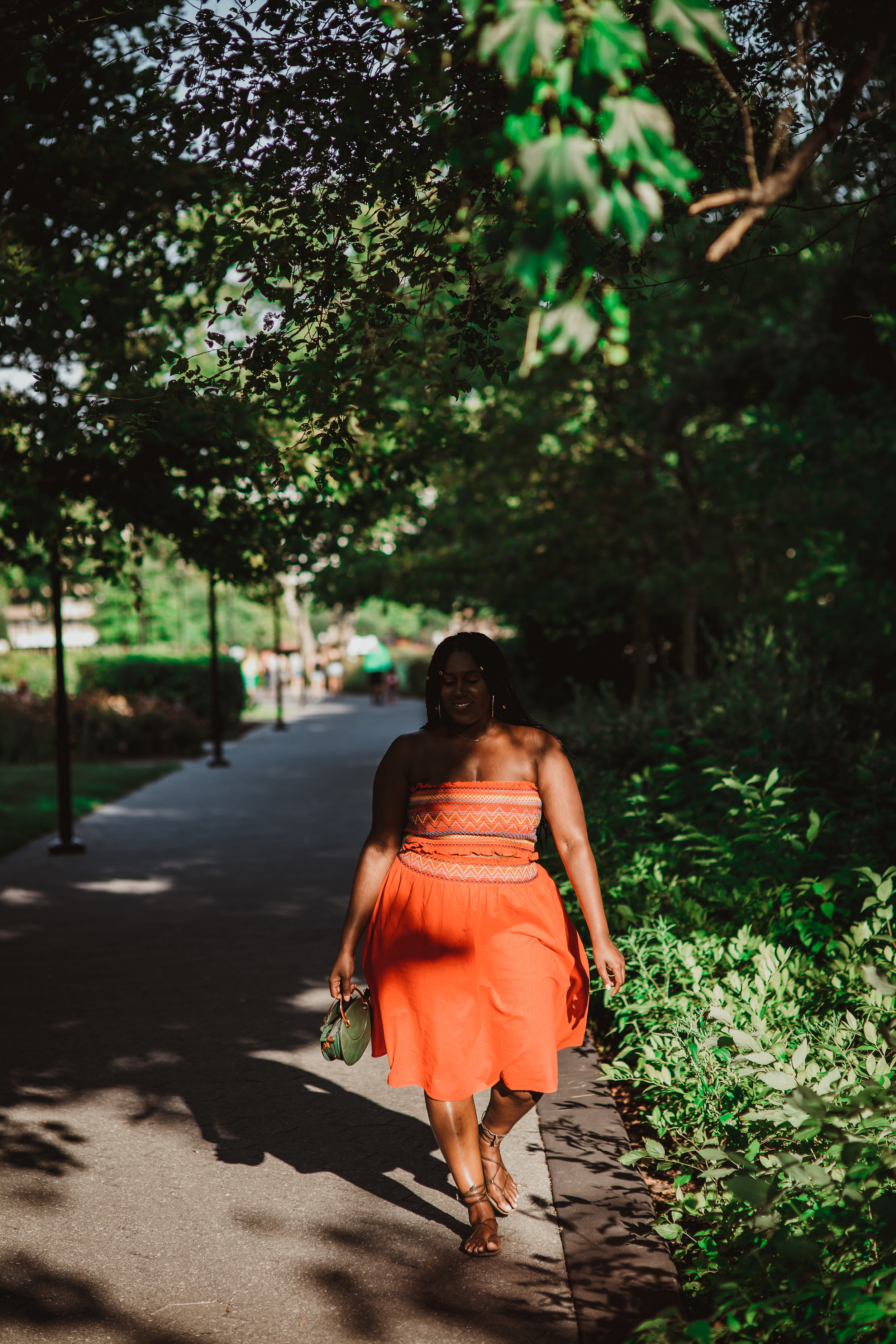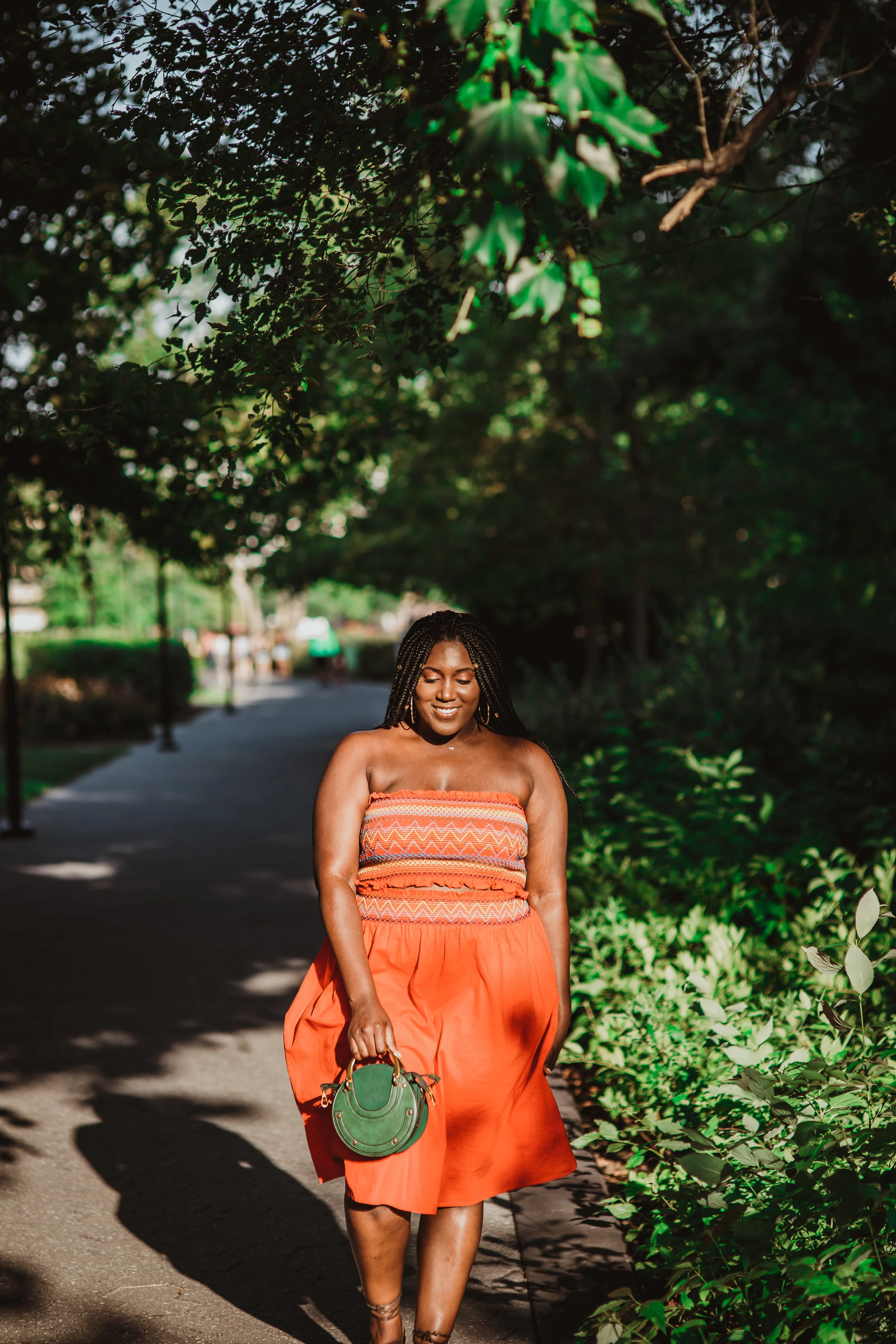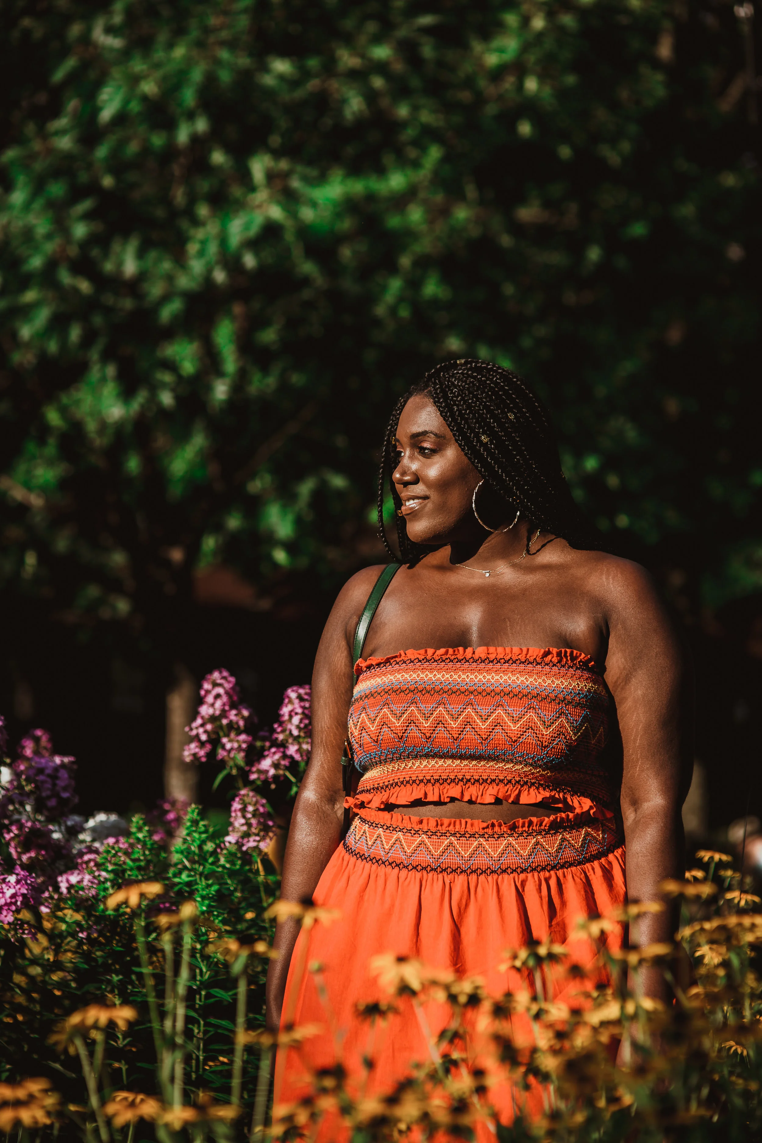 When I put on this outfit it feels like home. It feels like the playful side of my personality in outfit form. I could live in it forever. Capturing this look has been my favorite shoot to date. I felt so comfortable and free in the smocked top and skirt. The colors against my dark skin made me feel so beautiful and vibrant. It was like the outfit awakened my inner dreamer.