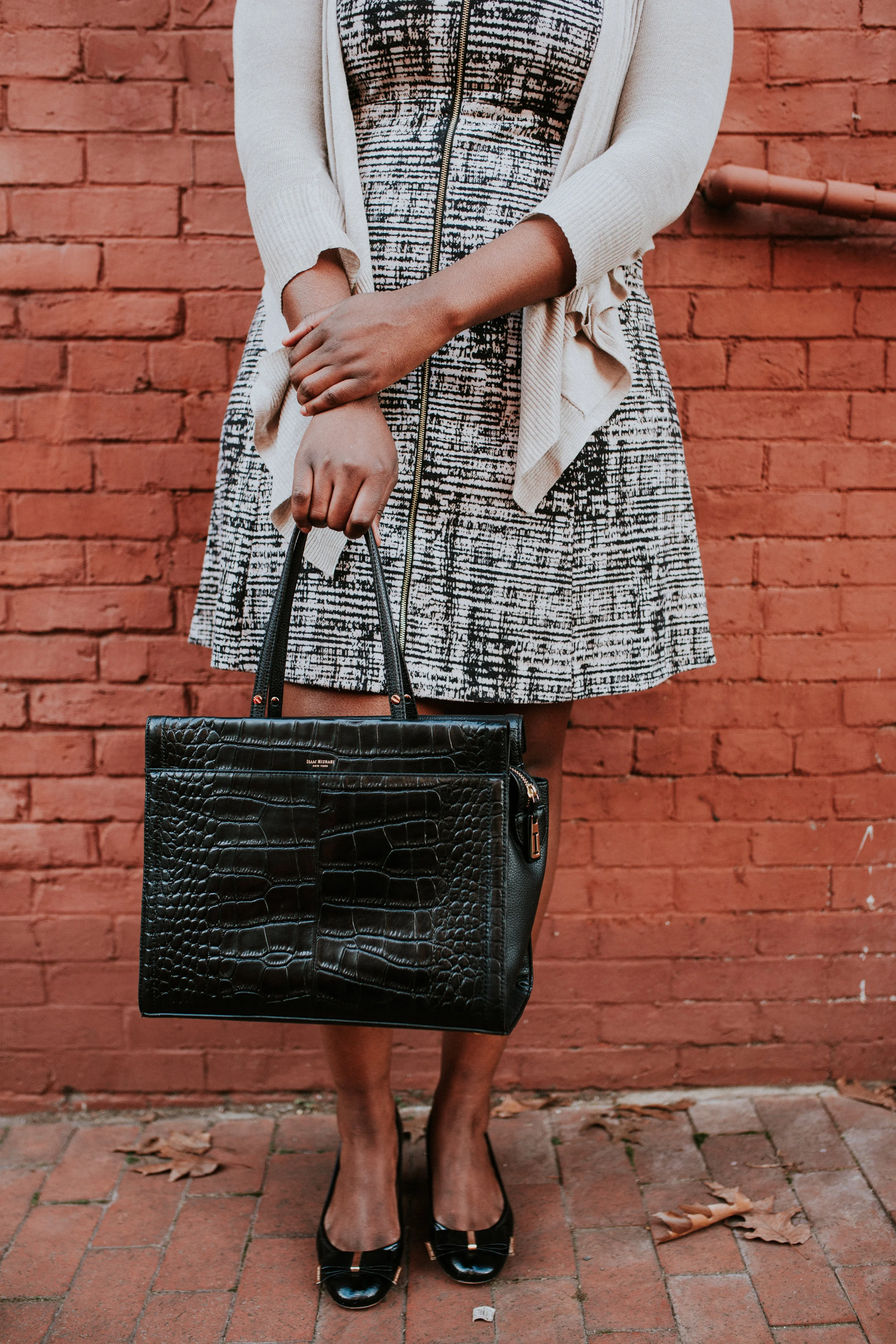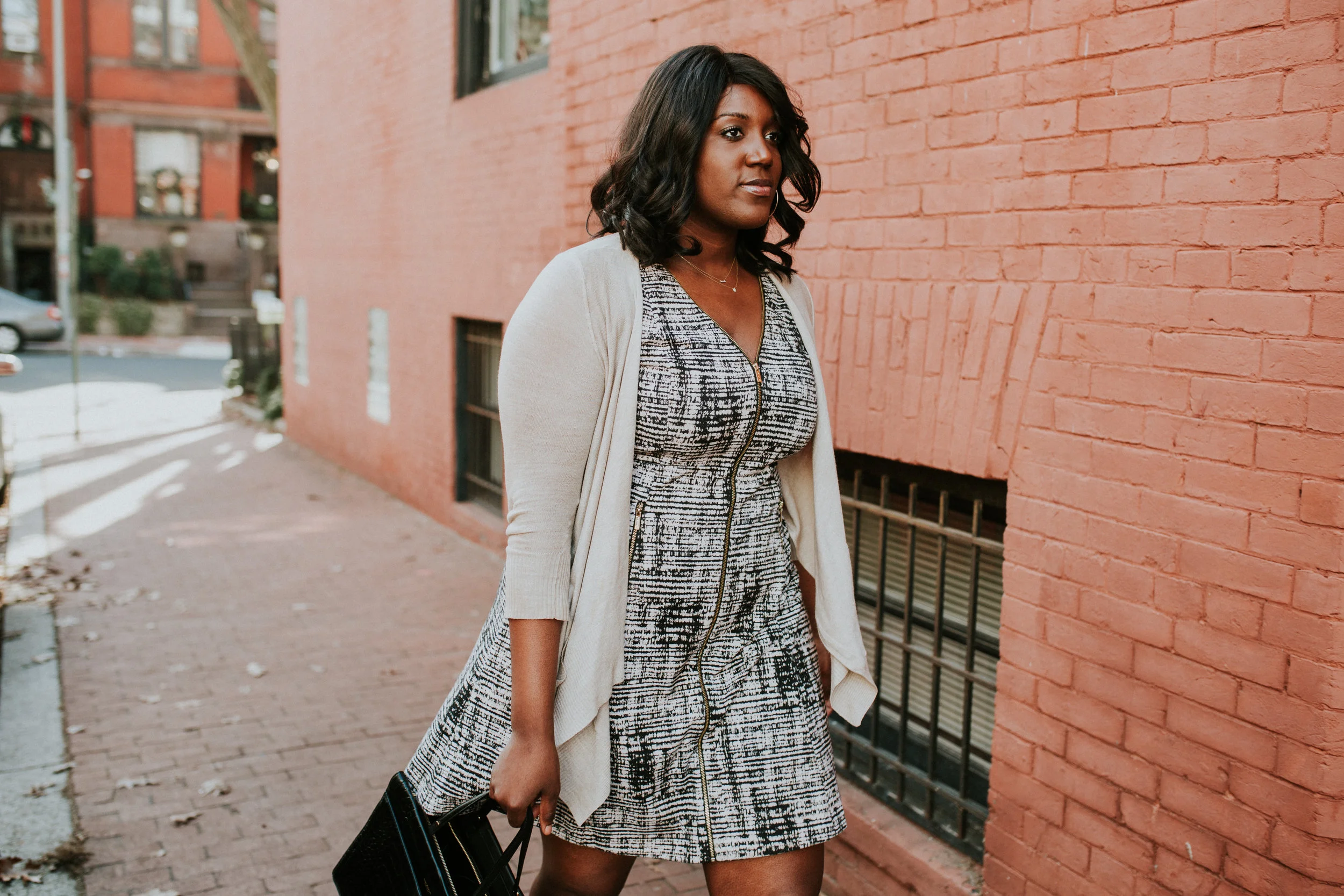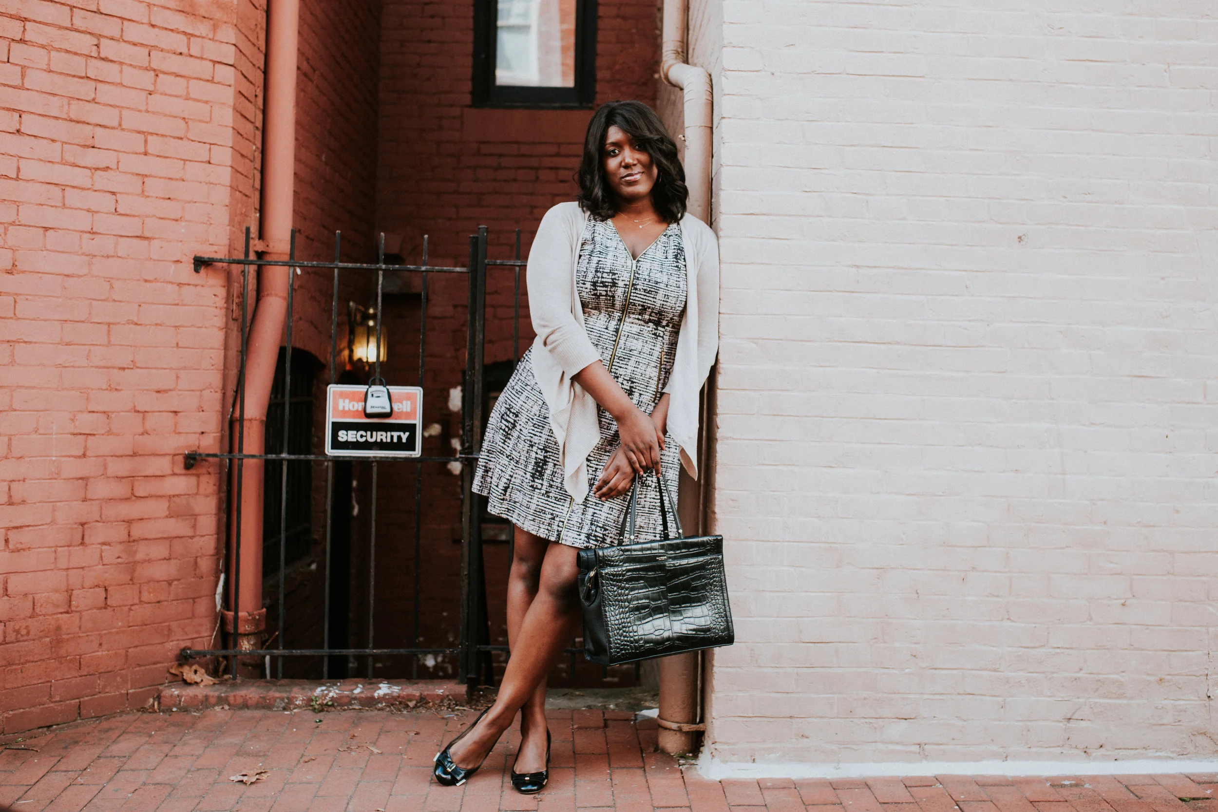 The beauty of the female body is that we all come in different shapes and sizes. Designers can’t possibly meet the needs of everyone when creating a new piece, so knowing how to shop for your body type is extremely important - stay tuned for a future post on this topic. Whether you have an hourglass, pear, rectangle, or inverted triangle shape, the A-Line dress will flatter your figure. Similar to the Fit-and-Flare, A-Line dresses feature a fitted upper bodice through the waistline, and a gentle flare around the hips - they're literally shaped like the letter “A”. My favorite thing about this style is that it's a master of all things. Are you curvy and looking for a work appropriate option that doesn't cling to your hips? Throw on an A-Line dress! Are you slim and searching for a style to give you a curvier look? Throw on an A-Line dress! I love this dress so much that I bought it in black as well. For more workwear inspiration and tips, click here.