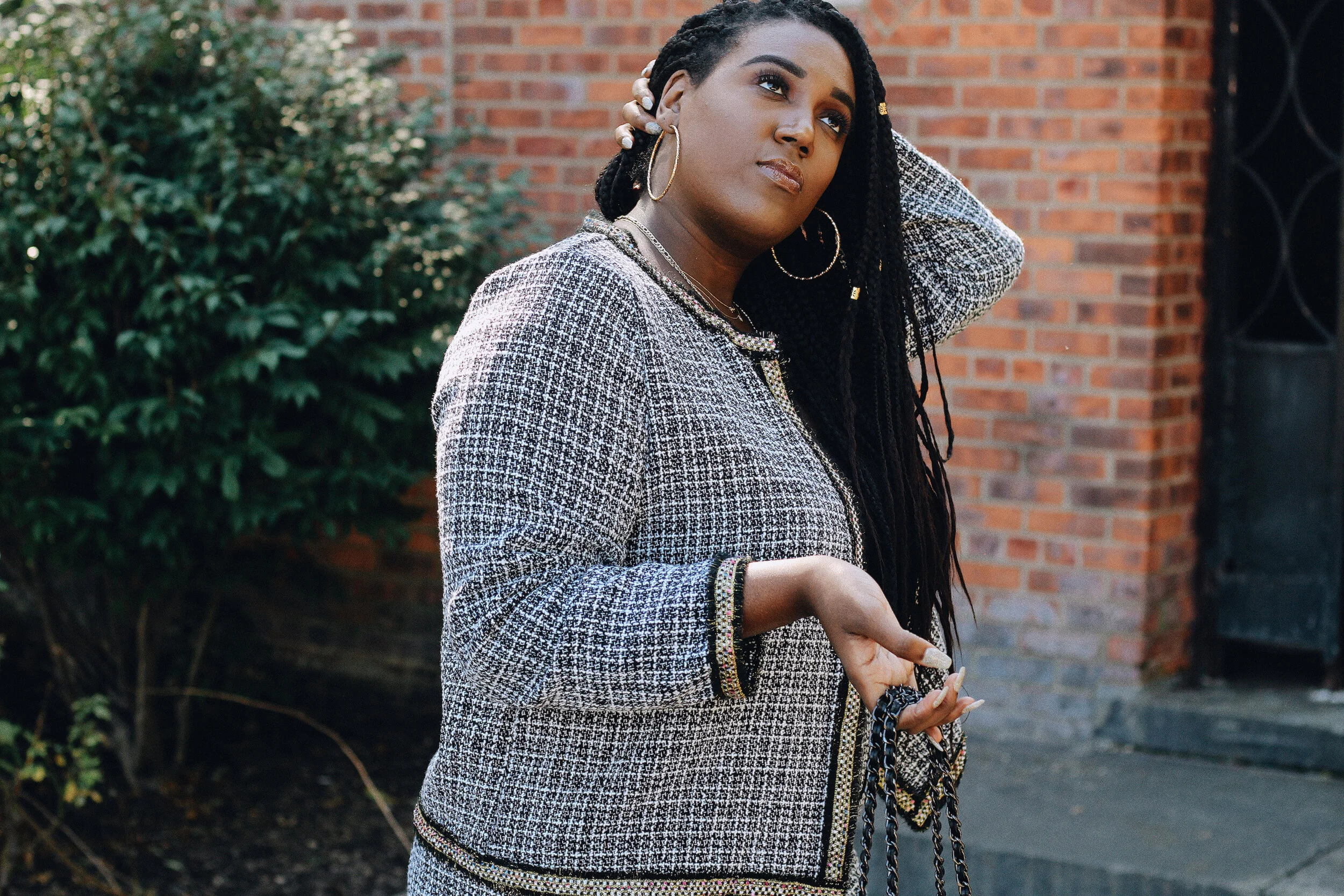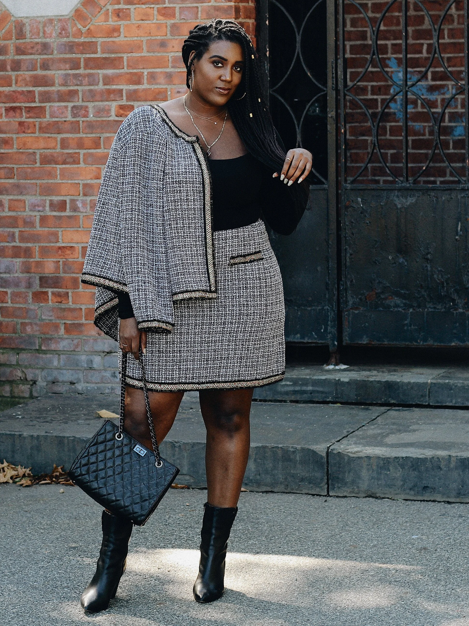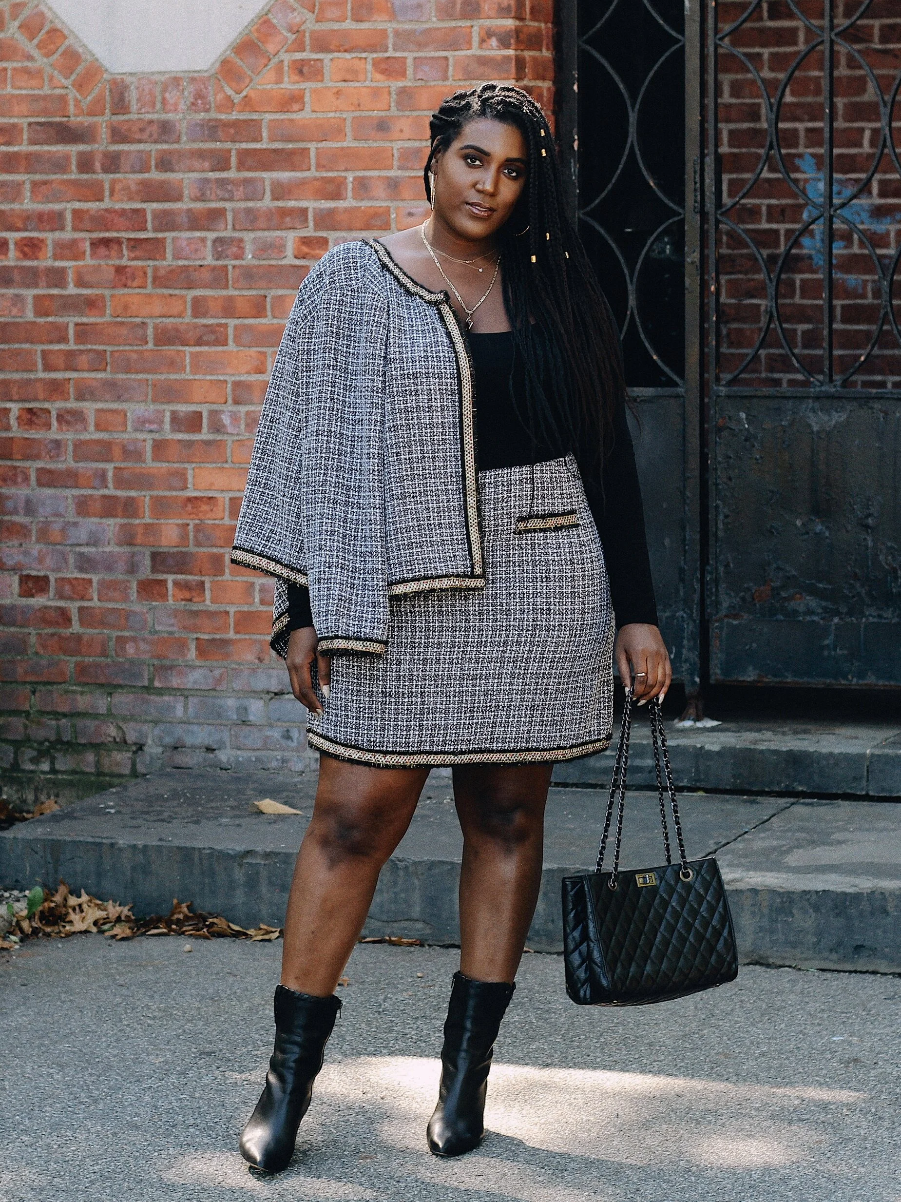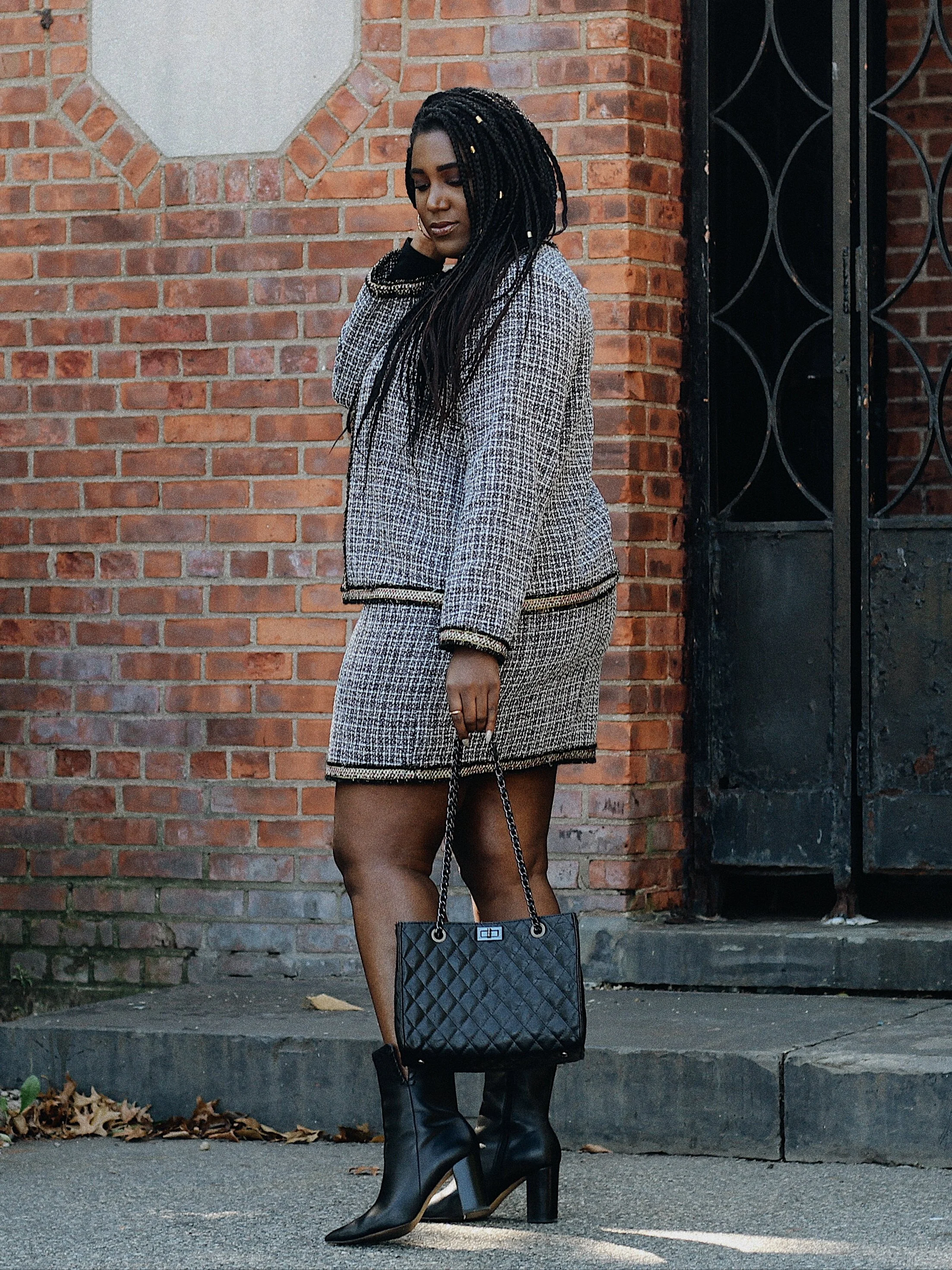 Today Iβm feeling super preppy in my gifted Tweed jacket and skirt set. The only thing missing is my beret! If you like this outfit, you can find it here (search ID: 796558).