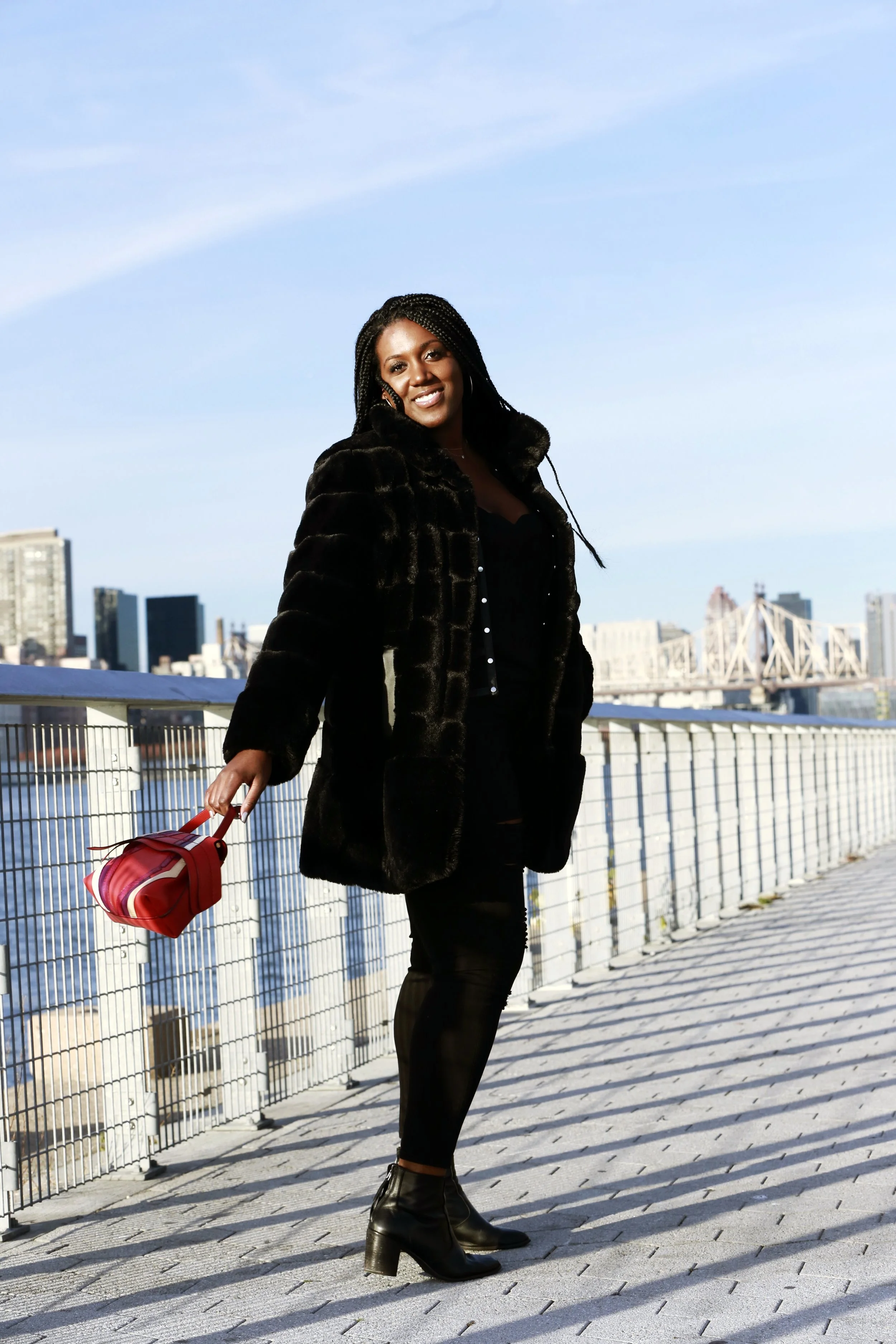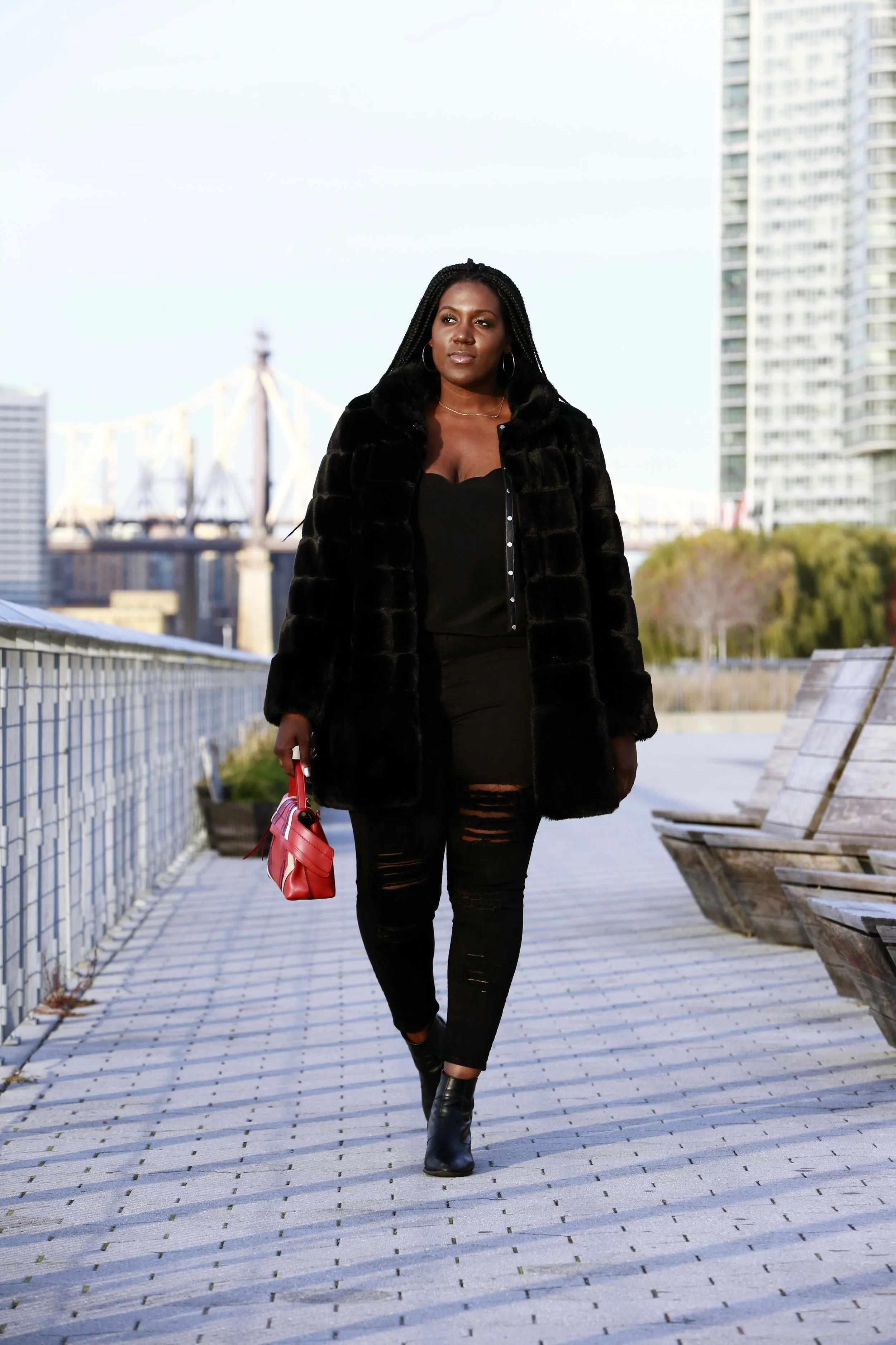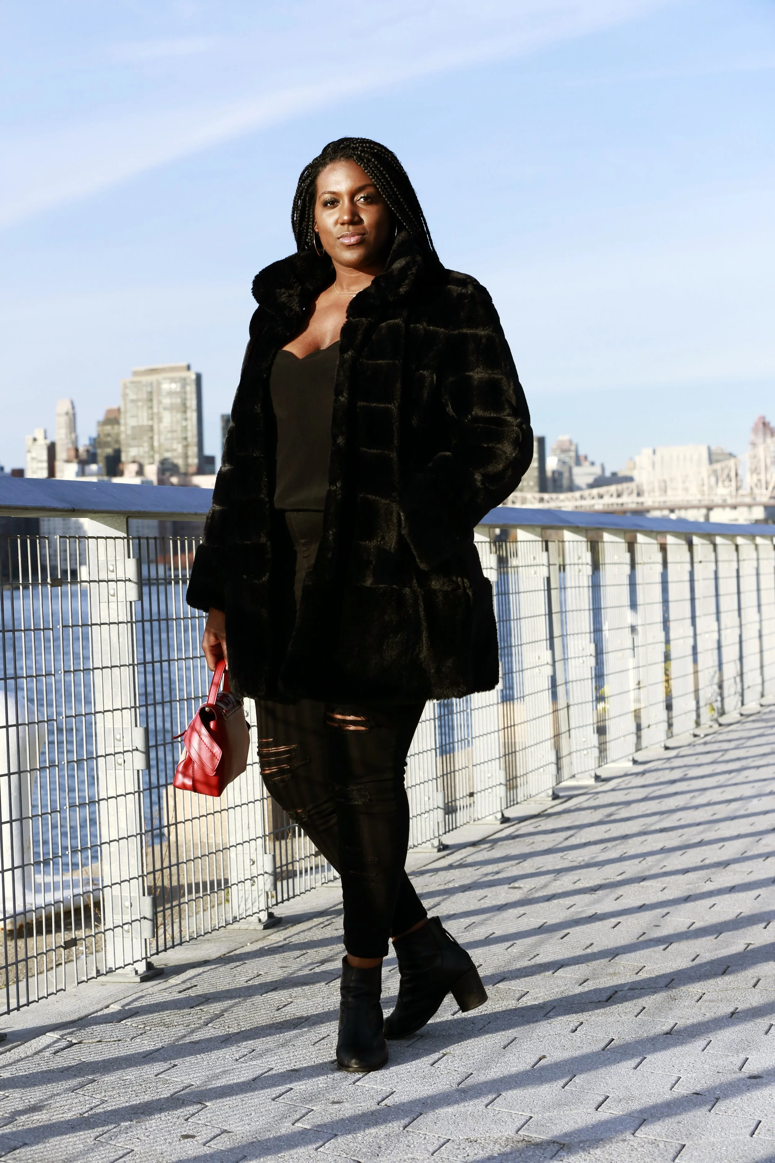 Today I dressed it down with a pair of ripped jeans and a red bag for a pop of color, but the beauty of this coat is that you can also dress it up. These Madewell boots are my go to shoes for fall and winter. They're super comfortable, so I wear them to work, party, dates and everything in between. I wish I'd gotten two pairs! Luckily, I was able to snag the Sutton Boot, this seasons update of the pair that I'm currently wearing. Get the look below.