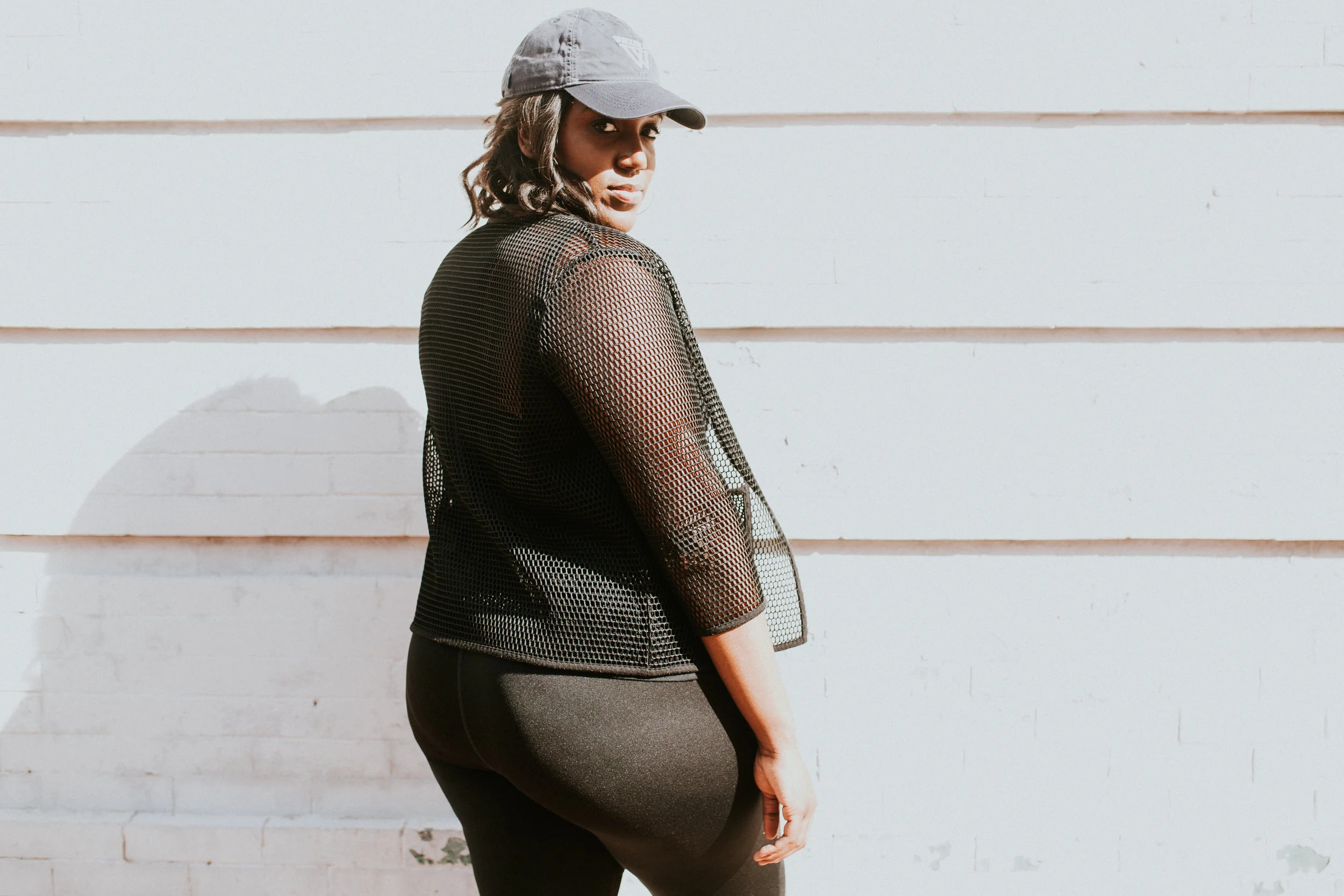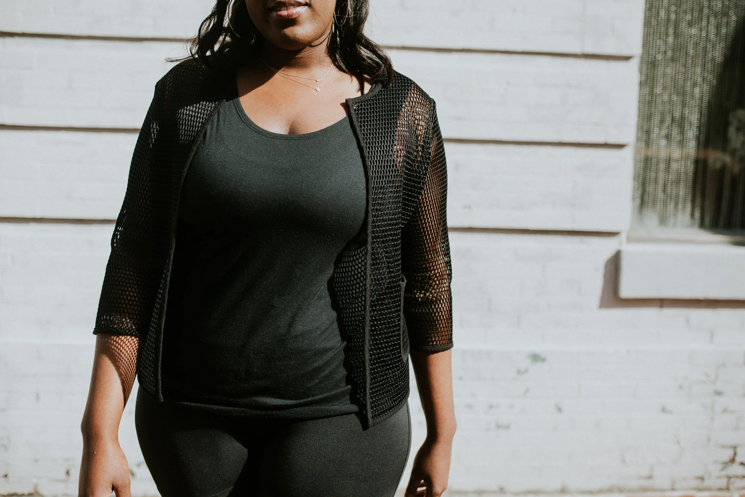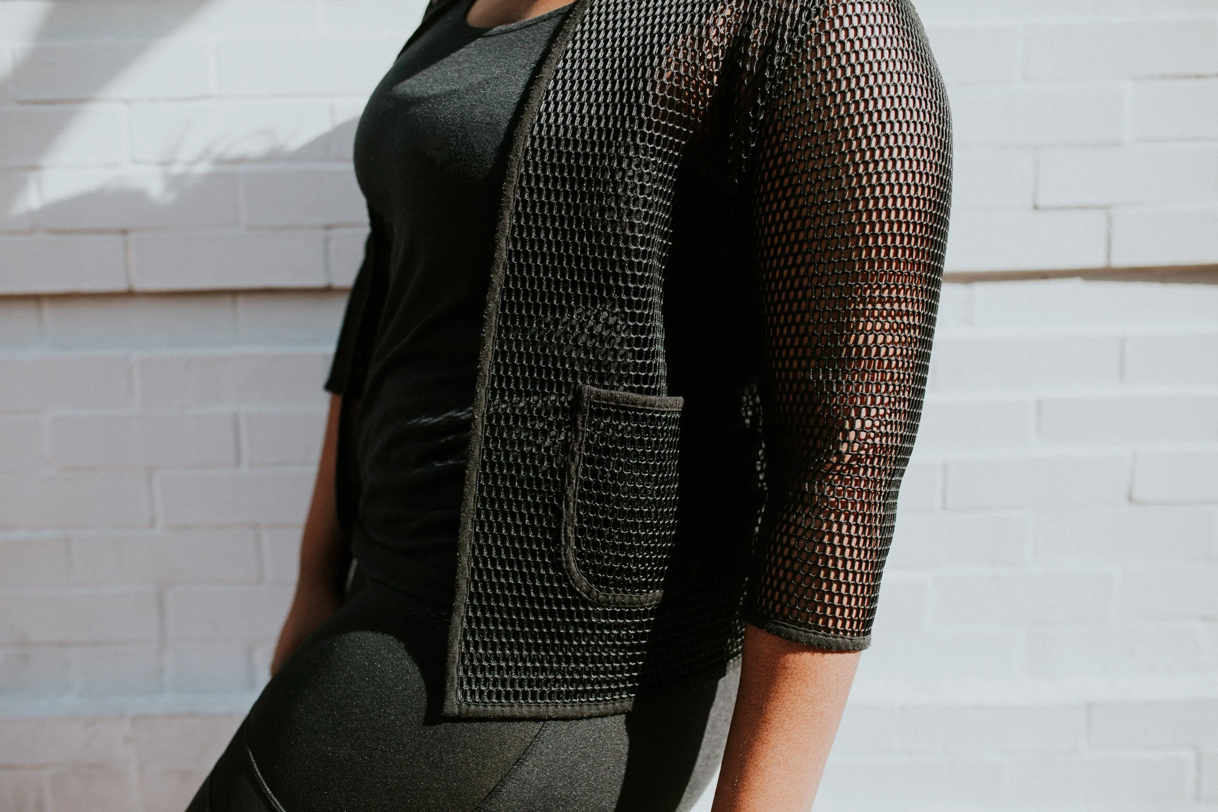 This wouldn't be a style blog if I didn't talk about dressing for the occasion! Call me crazy, but when I get new workout gear, I'm always in the mood to take a class. We all have our favorite pair of high-waisted leggings that don't ride down, and sports bras that fit just right, but the same old weekly rotation can become uninspiring. One way to keep things fresh is to get a cute new look. If you can't afford a new outfit, layer a new piece in with some old ones! Today, I'm meshin' around in my new mesh panel leggings, and an old mesh blazer. The bra and top featured are also old from Fabletics. Yesterday, I was feeling grouchy before heading to barre, so I threw on my new leggings to put some pep in my step.