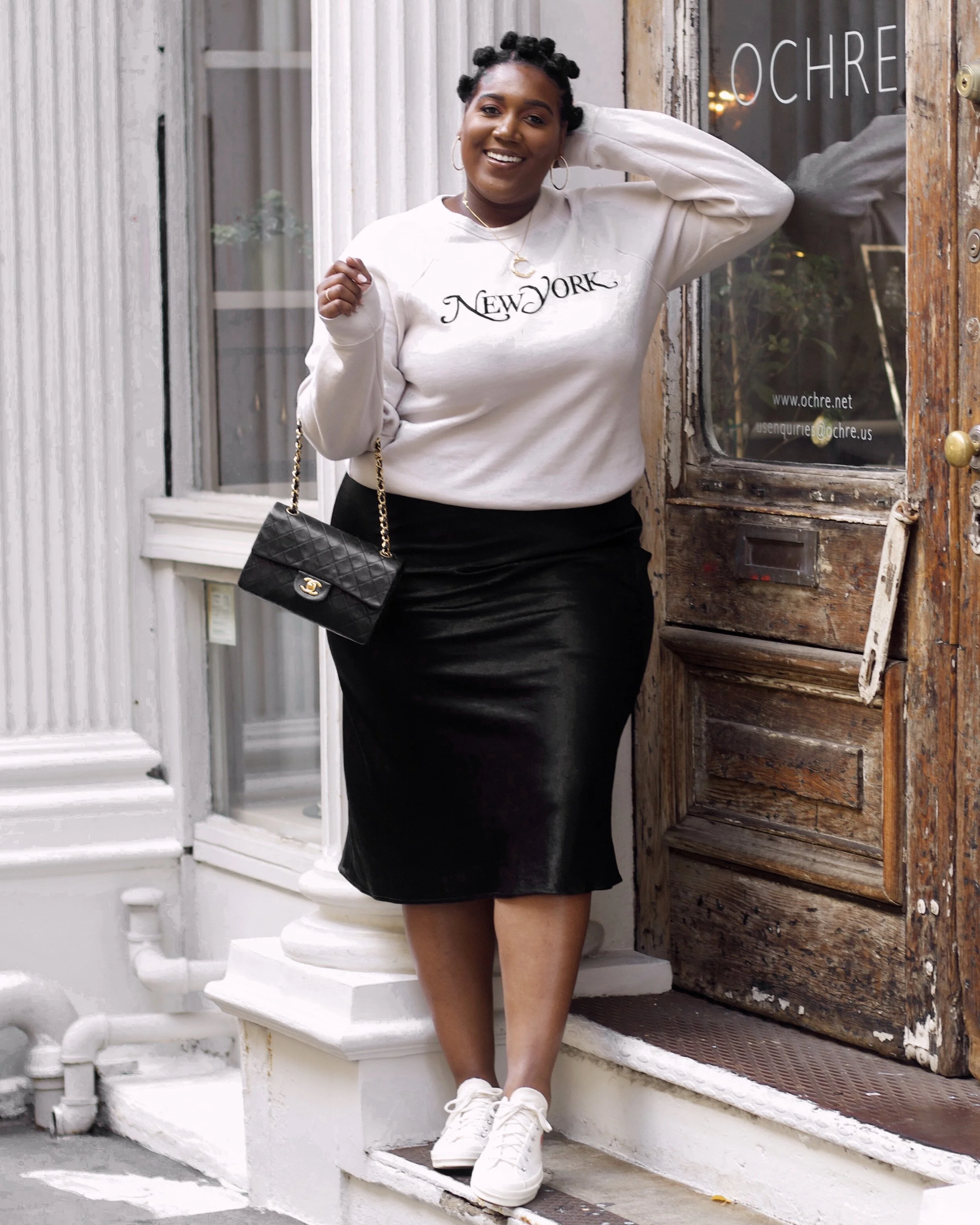 Hello Ladies! As I continue to refine my wardrobe, I find myself increasingly interested in the quality and versatility of the pieces that I choose to invest in. The category is timeless longevity. In the spirit of this message, I am teaming up with 11 Honoré over the next few months to share how versatile luxury plus size fashion can be! Today I’m focusing on styling a silk skirt 3 ways.