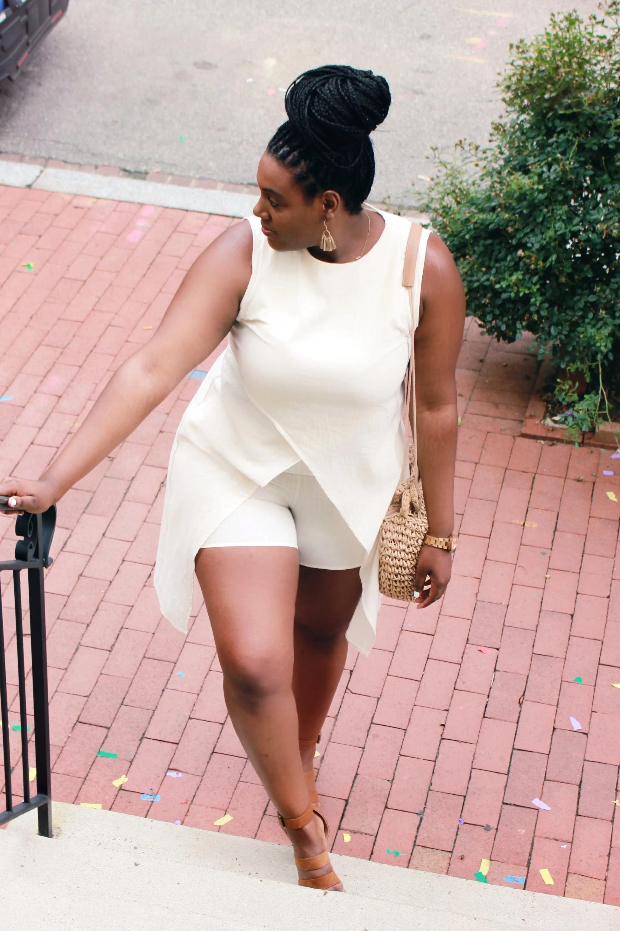 It's no secret that I love a great matching set. As someone that grapples with intense indecision, the flexibility that they provide is a real treat. Co-ords are awesome because they're designed to be worn together, but can easily be re-purposed with different pieces to create an entirely new outfit. You may think it ends there, but the linen set that I'm wearing today takes co-ord versatility to an even higher level! The split hem top can be worn as is for ultimate goddess vibes, or tied in the front or back for a more casual look. In this post, I style the top both ways. I can't wait to pair it with different shorts and skirts to serve new looks all summer long. I already have a couple ideas swirling around in my head.